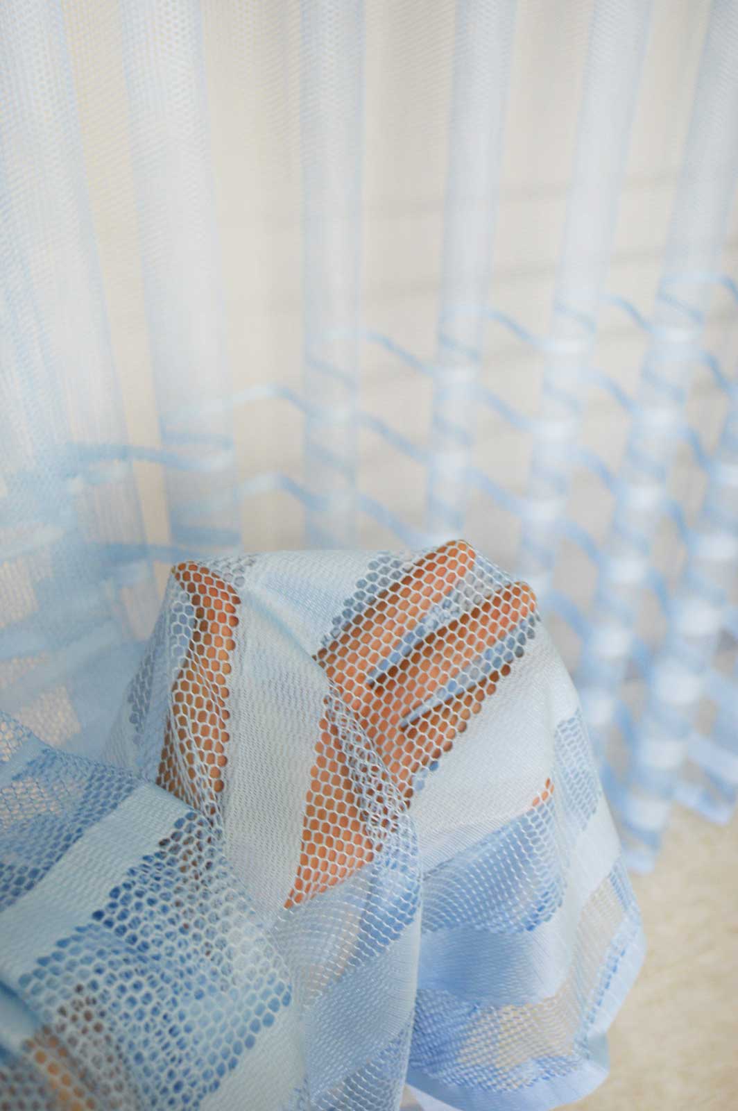 Şerit Desenli File Tül Perde – Mavi