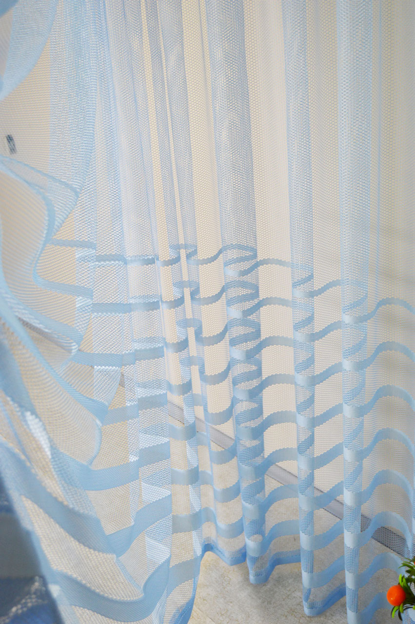 Şerit Desenli File Tül Perde – Mavi