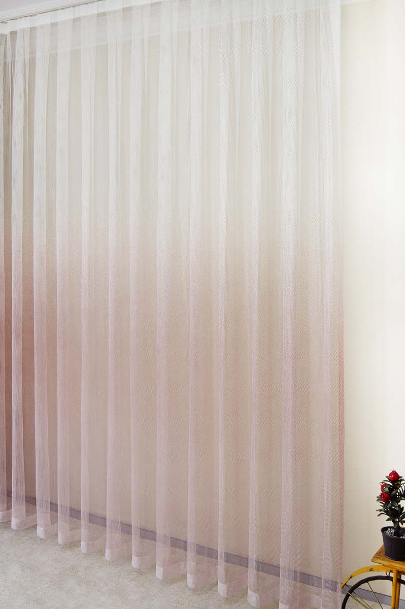 Geçi̇ş Renkli̇ File Tül Perde – Pudra Pembe – Beyaz