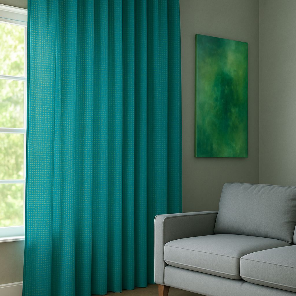 Turkuaz Rengi – Kare Desenli Fon Perde