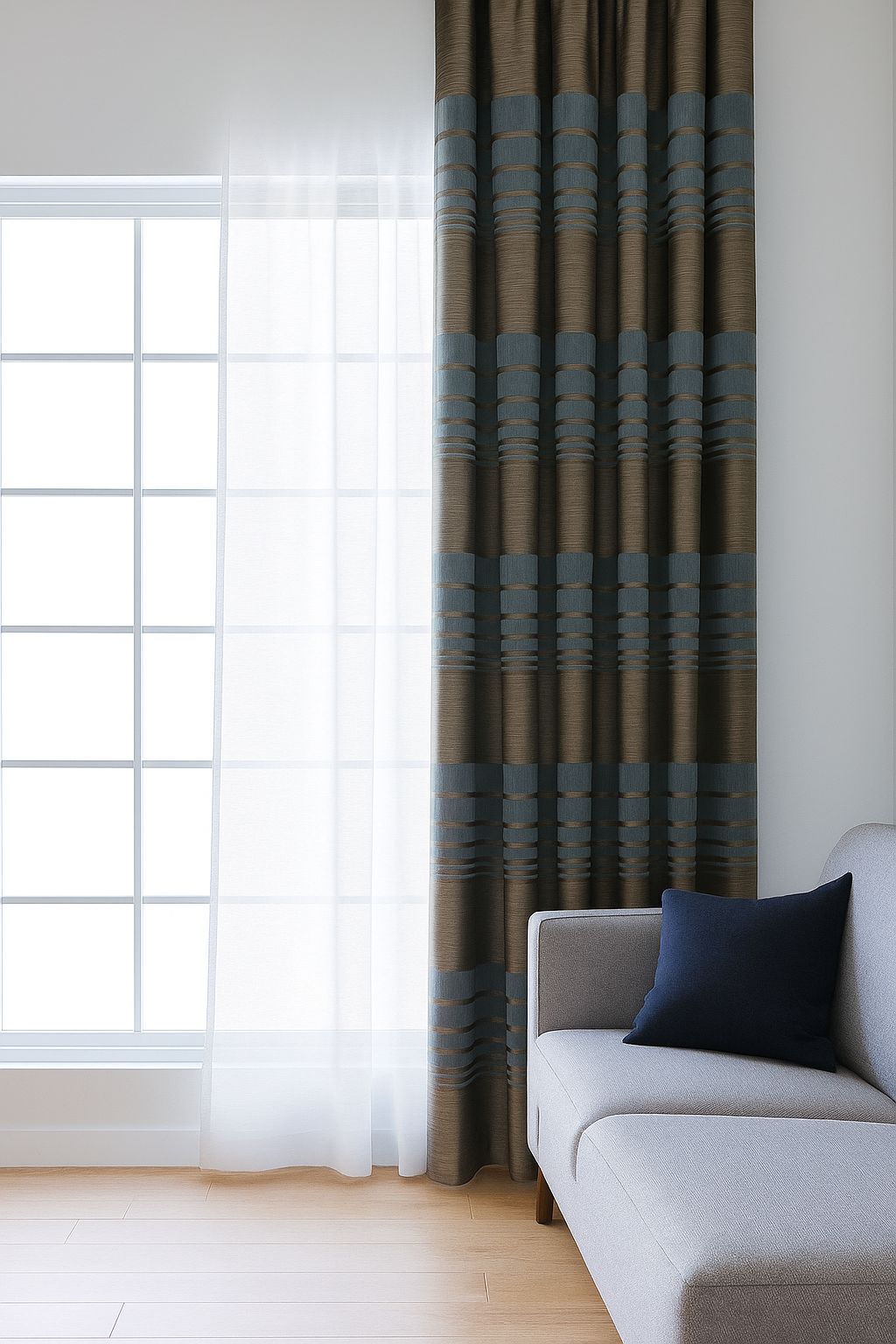 Kahverengi Şeritli Fon Perde