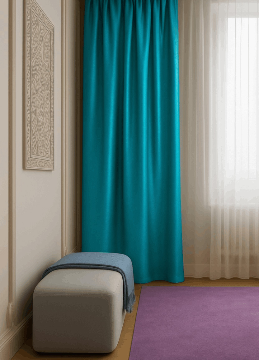 turkuaz mavi saten fon perde 6